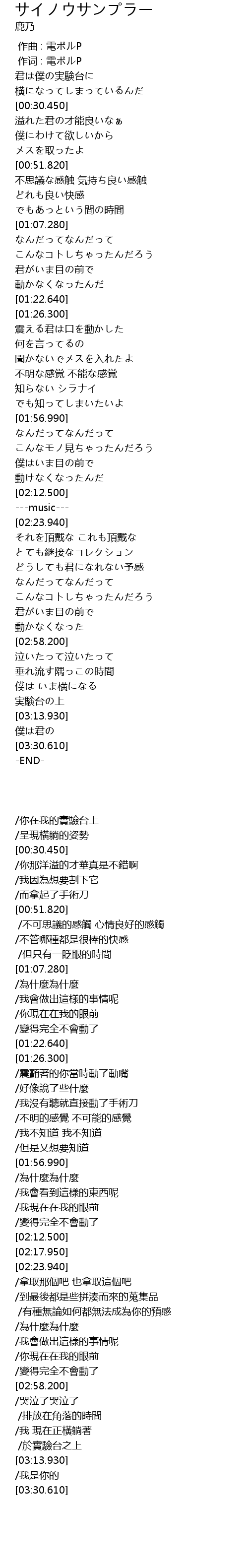 | [00:00.00] | 作曲 : 電ポルP |