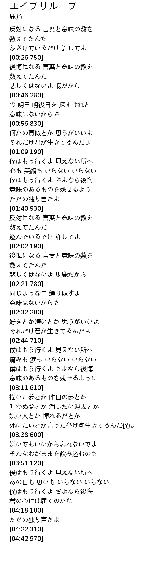 | [04:05.290] | 僕はもう行くよ さよなら後悔 |