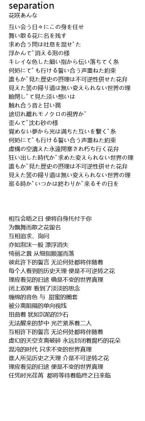 | 歌曲 | separation |