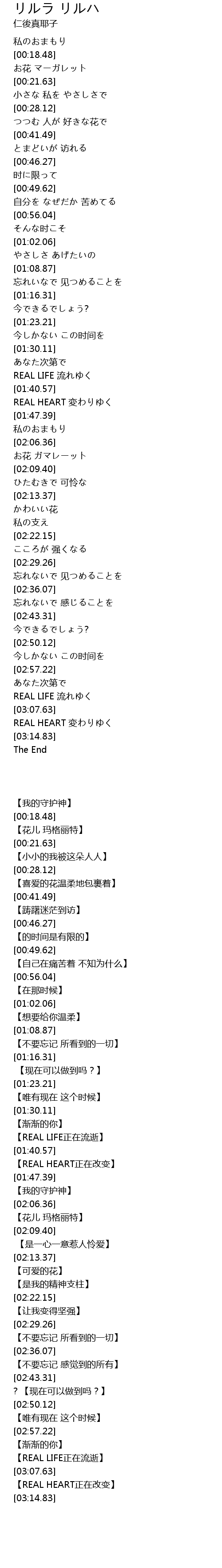 | [03:01.35] | REAL LIFE 流れゆく |