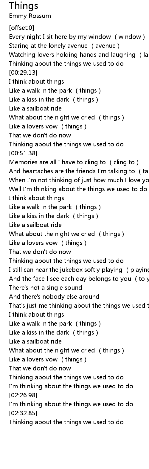 | [00:47.88] | Thinking about the things we used to do |