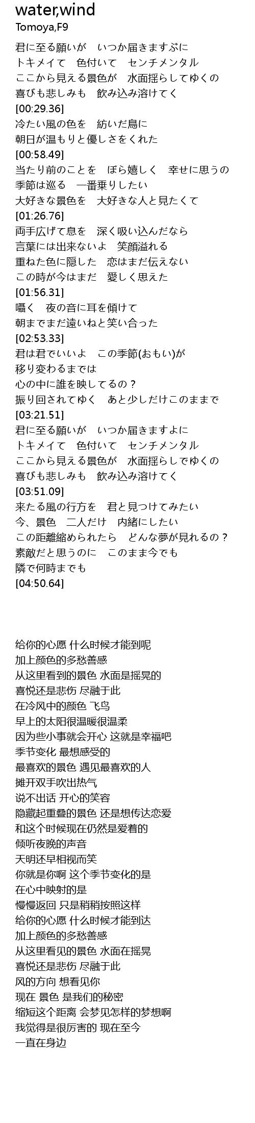 | [04:18.52] | 来たる風の行方を 君と見つけてみたい |