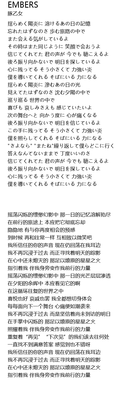 | 歌曲 | EMBERS |