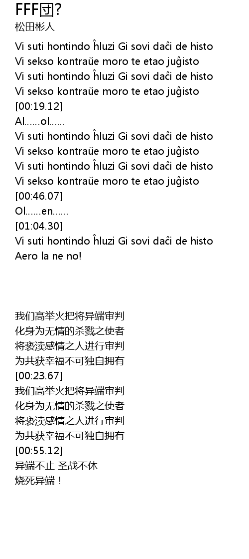 | [00:14.67] | Vi sekso kontraŭe moro te etao juĝisto |