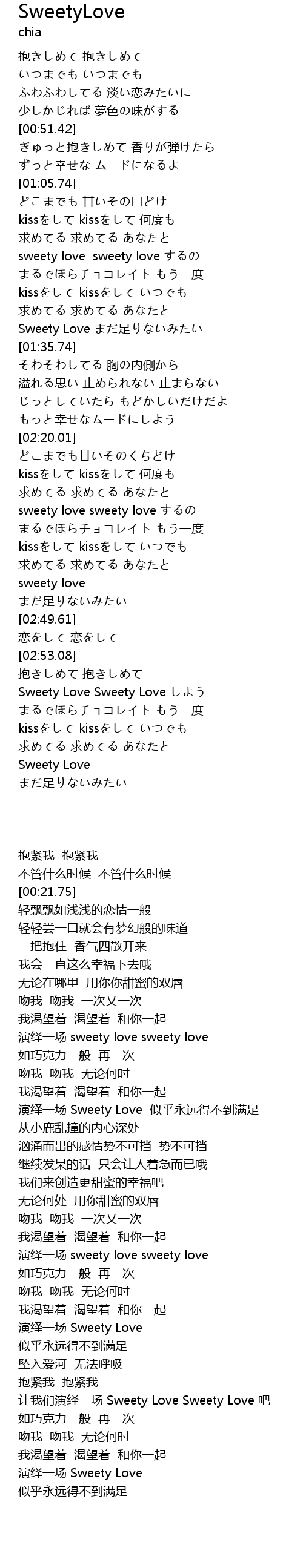 | [03:00.74] | Sweety Love Sweety Love |
