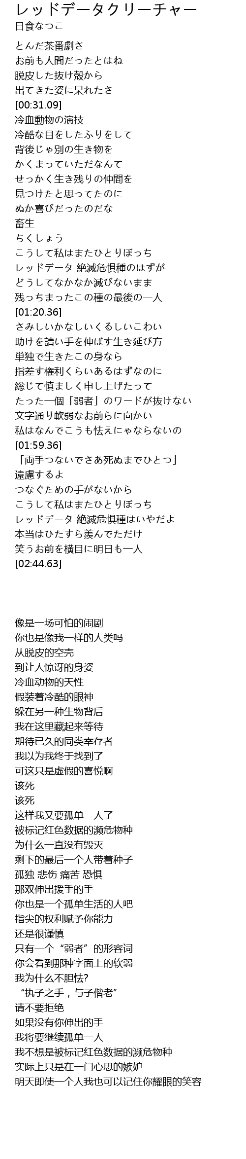 | [02:33.23] | レッドデータ 絶滅危惧種はいやだよ |