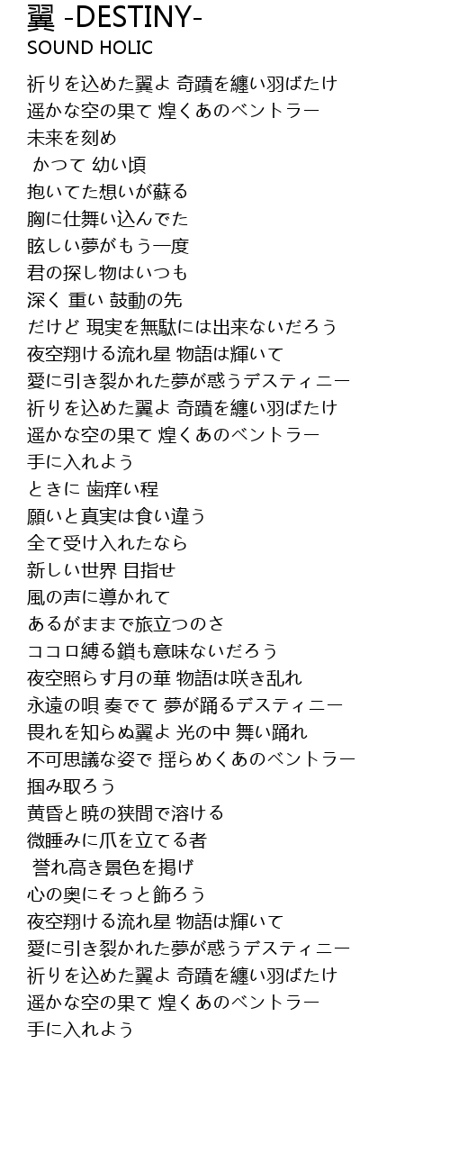 | [01:58.900] | 永遠の唄 奏でて 夢が踊るデスティニー |