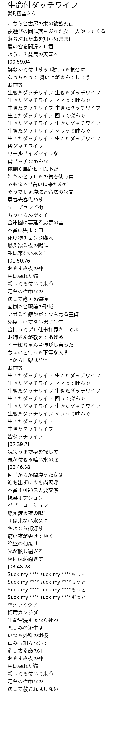 | [03:50.67] | Suck my **** suck my ****もっと |