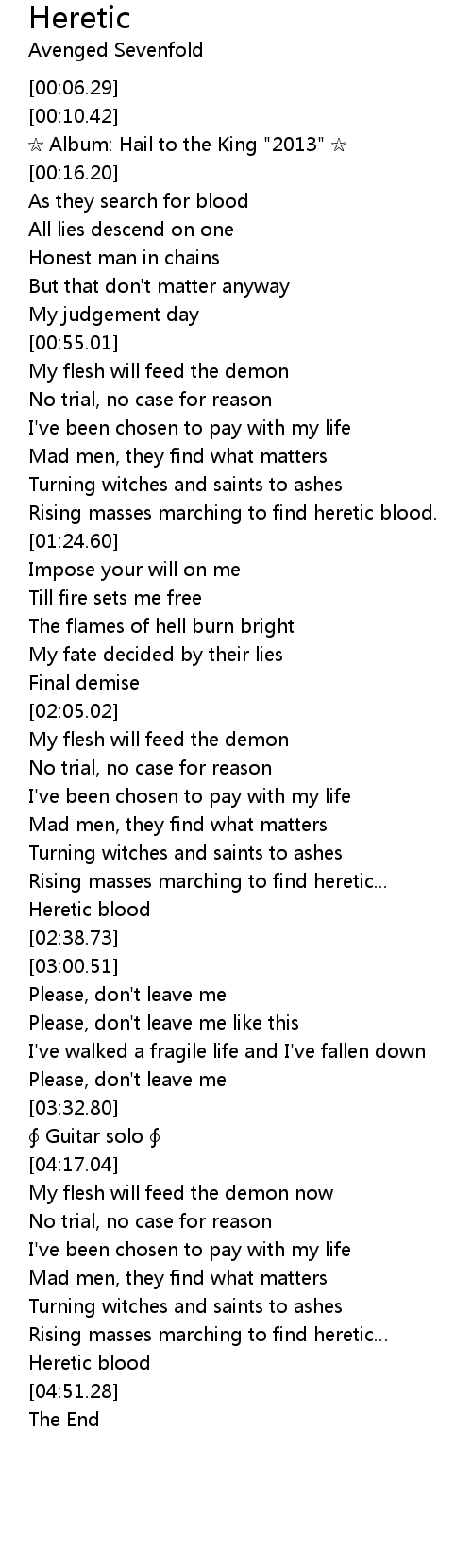 | [04:48.81] | Heretic blood |