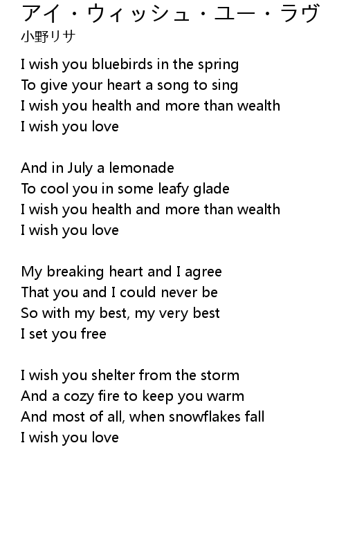 | 歌曲 | アイ・ウィッシュ・ユー・ラヴ |