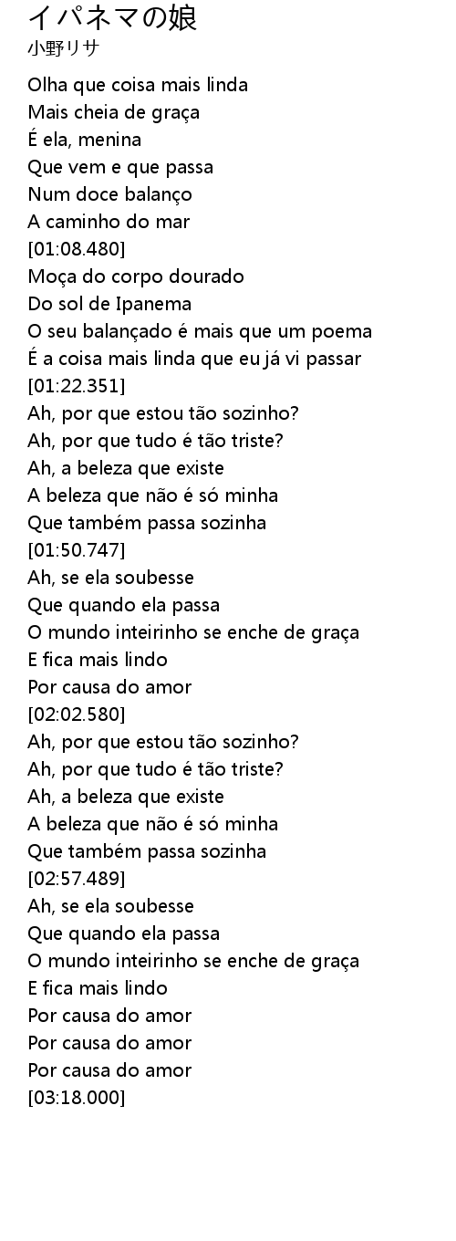 | [01:14.959] | O seu balan ado e mais que um poema |