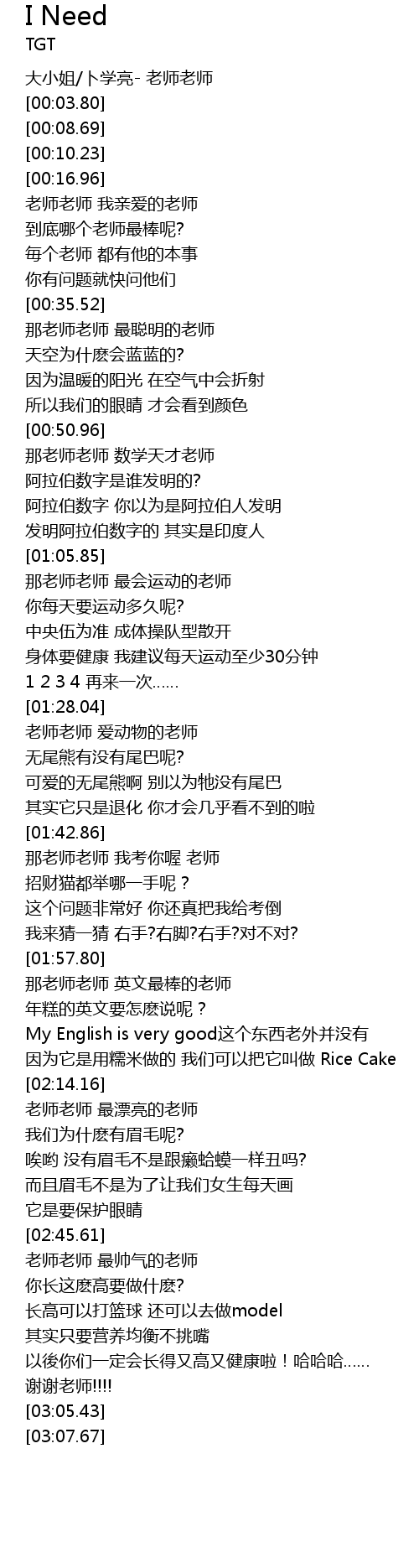 | [00:36.56] | 那老师老师 最聪明的老师 |