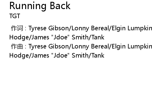 | [00:00.000] | 作词 : Tyrese Gibson/Lonny Bereal/Elgin Lumpkin/Brandon Hodge/James "Jdoe" Smith/Tank |