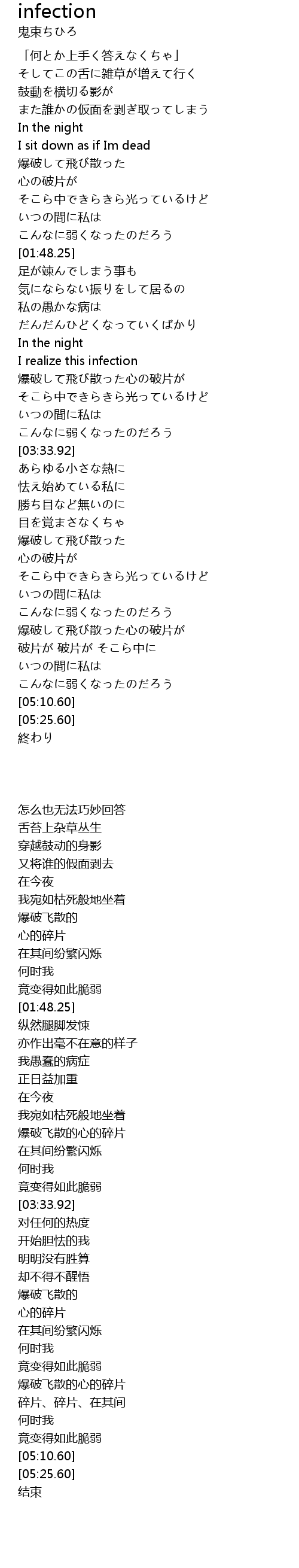 | 歌曲 | infection |