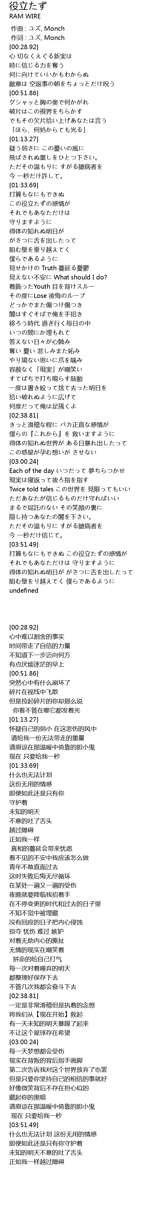 | [01:56.80] | 見せかけの Truth 蔓延る憂鬱 |