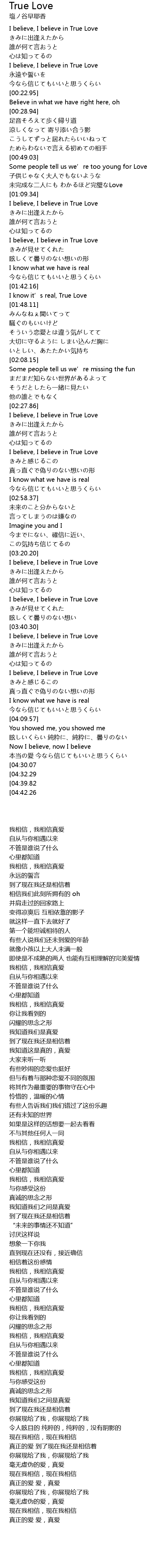 | [05:02.05][04:42.26] | 本当の愛 Love, True Love... |