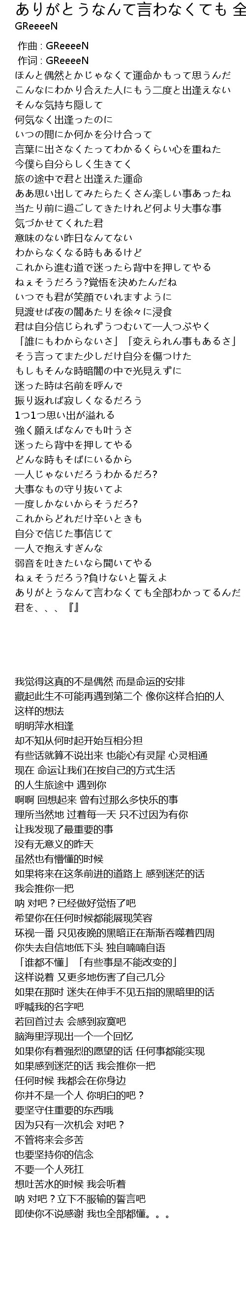 | [00:01.00] | zuò cí : GReeeeN |