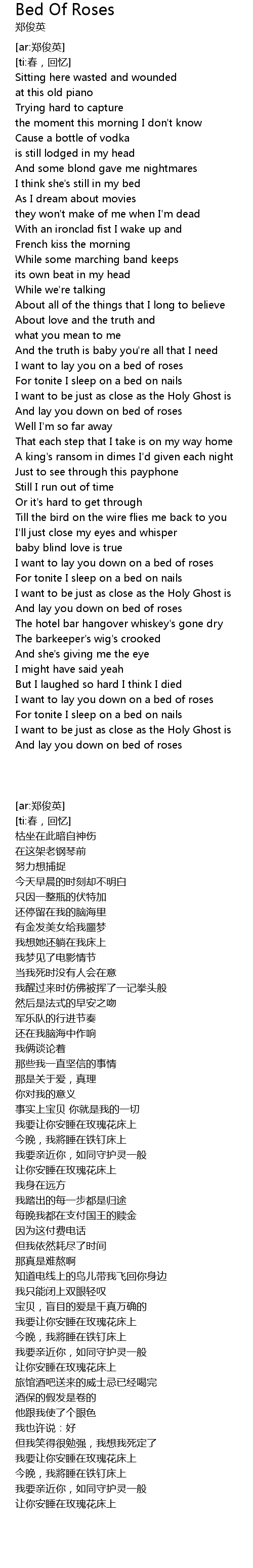 | [01:40.45] | 让你安睡在玫瑰花床上 |