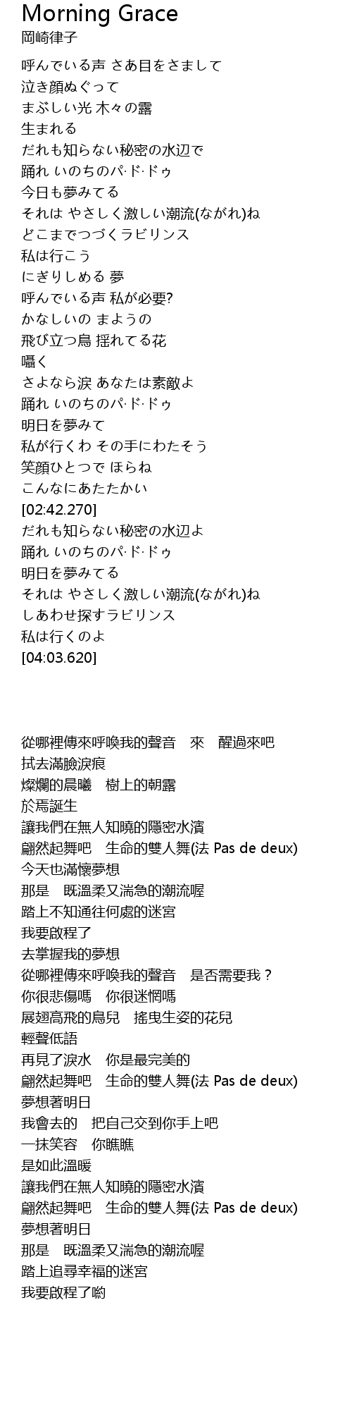 | [03:31.500] | 踊れ いのちのパ·ド·ドゥ |
