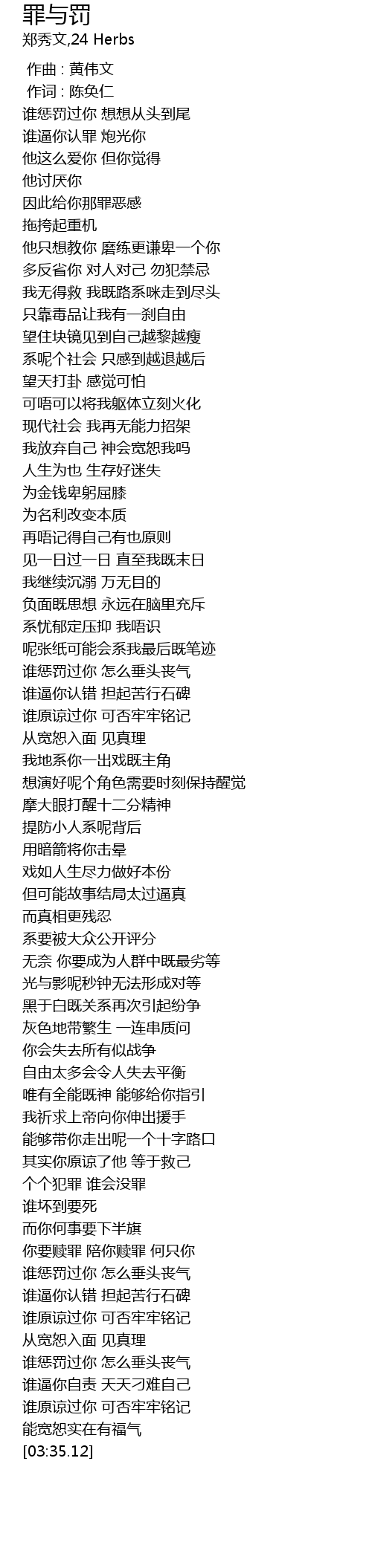 | [02:46.24] | 你要赎罪 陪你赎罪 何只你 |