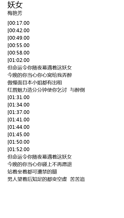[02:42.00] 但命运令你随夜幕遇着这妖女