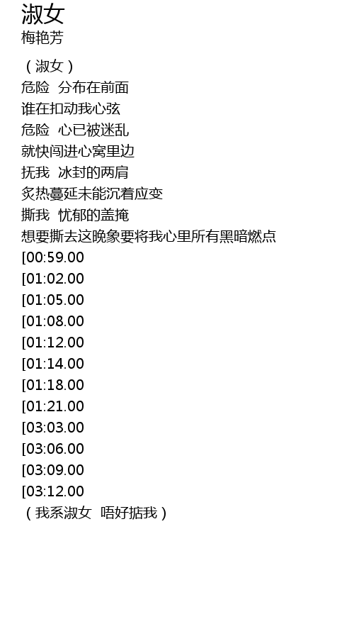 | [03:22.00][03:09.00][02:56.00][02:11.00][01:33.00] | shū nǚ xíng xiàng zhǐ yīng gāi lěng yàn |
