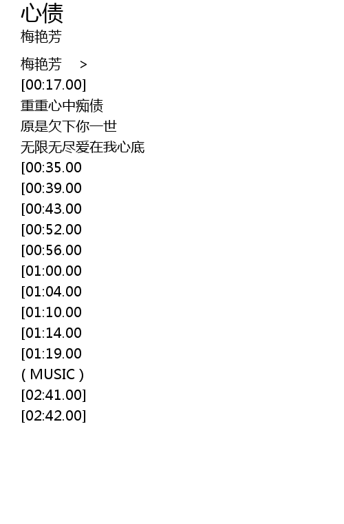 | [02:19.00][01:10.00] | 原来今生心债 |