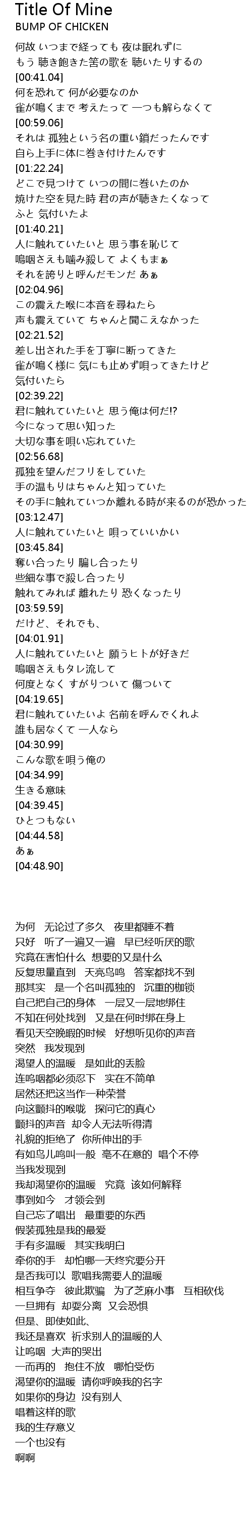 | [04:19.75] | 渴望你的温暖 请你呼唤我的名字 |