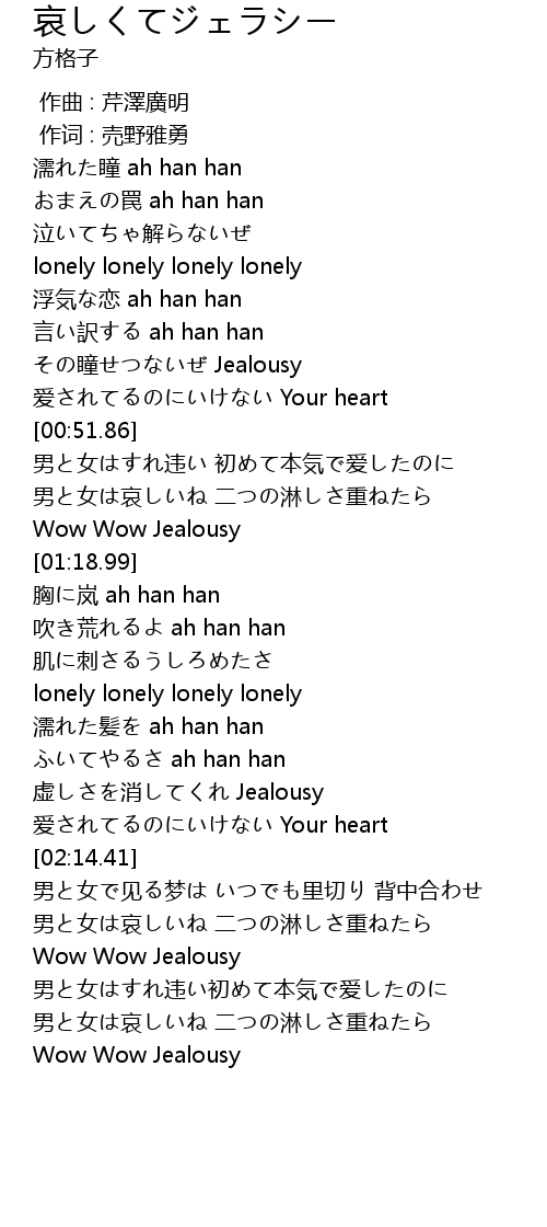| [01:54.02] | 虚しさを消してくれ Jealousy |