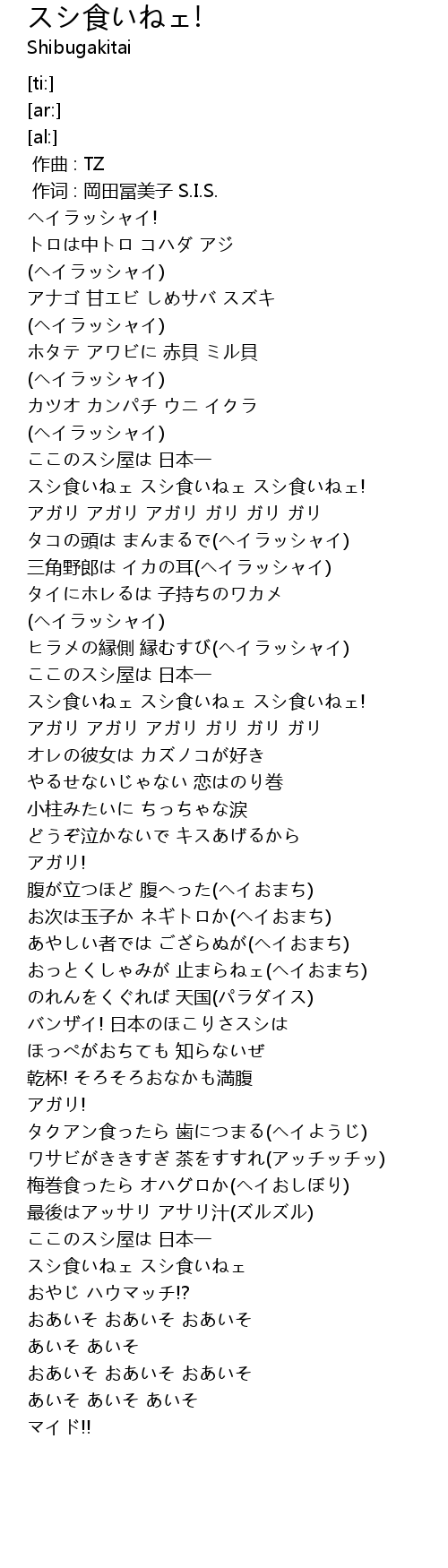 | [02:58.41] | スシ食いねェ スシ食いねェ |