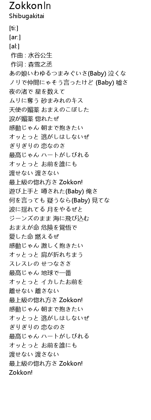 | [02:54.31] | 最上級の惚れ方さ Zokkon! |