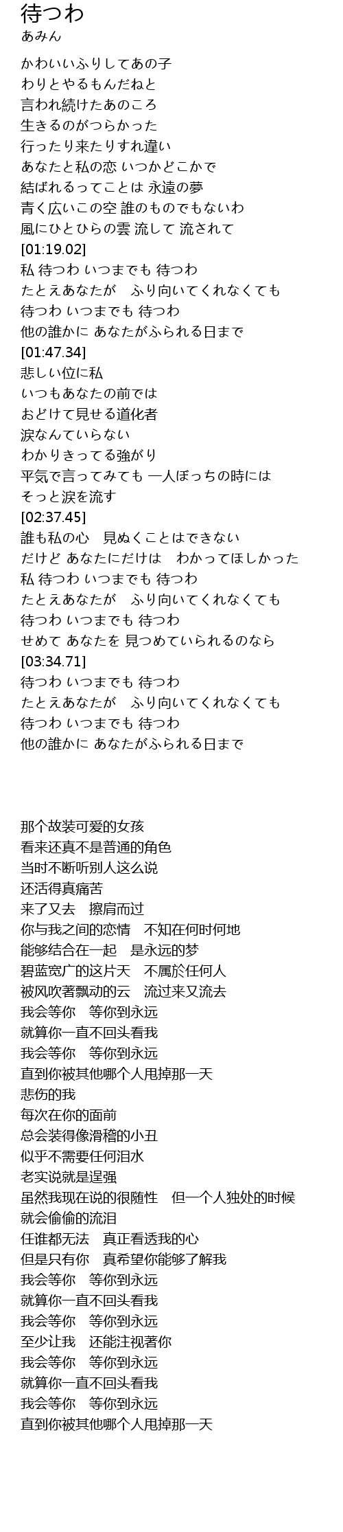 私 待つわ いつまでも 待つわ |