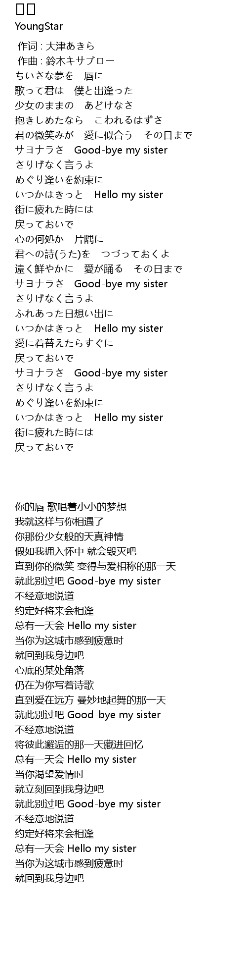 | [03:03.367] | 总有一天会 Hello my sister |