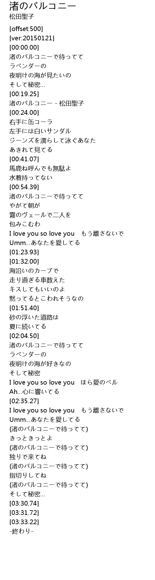 | [00:20.00] | 渚のバルコニー - 松田聖子 |