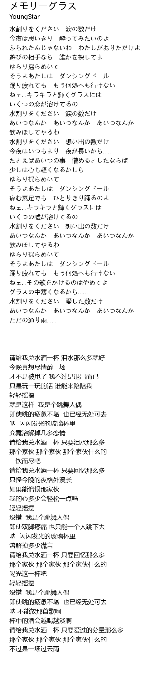 水割りをください 想い出の数だけ |
