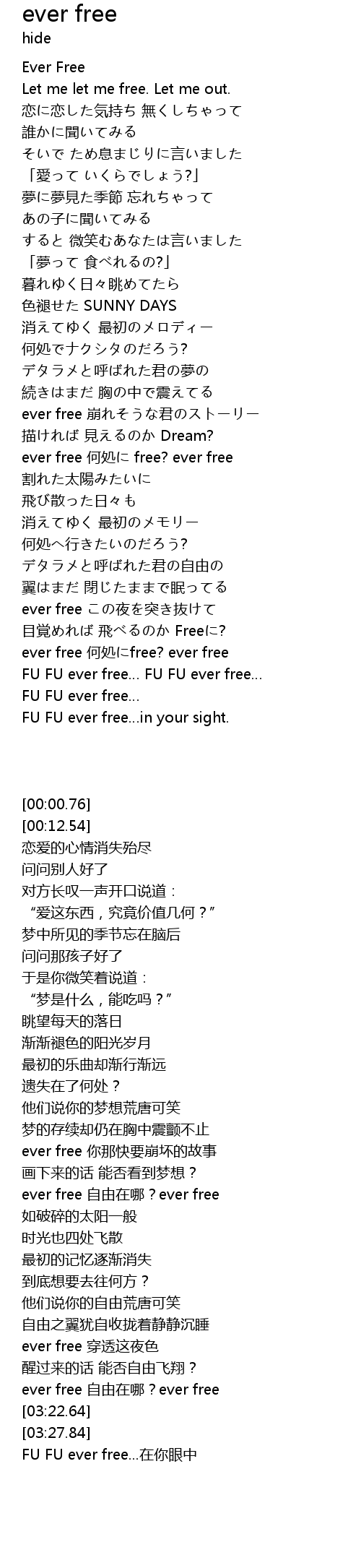 | [03:13.41] | ever free hé chǔ free? ever free |
