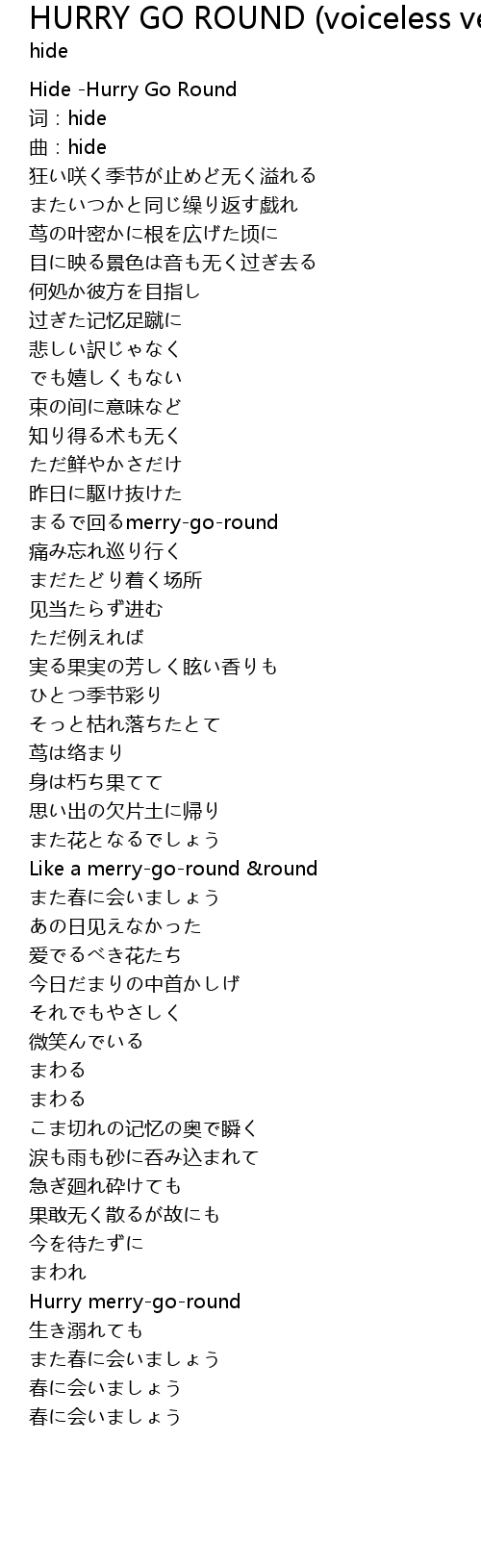 | 歌曲 | HURRY GO ROUND (voiceless version) |