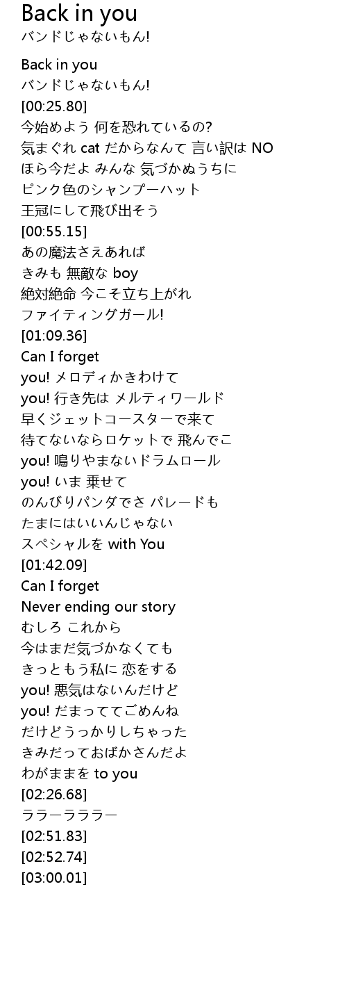 | [00:34.28] | 気まぐれ cat だからなんて 言い訳は NO |