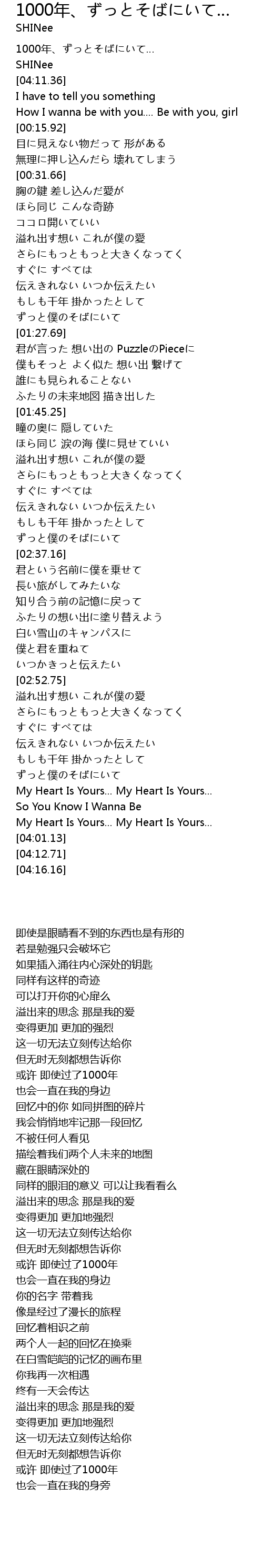 | [04:01.88] | 1000年、ずっとそばにいて… |