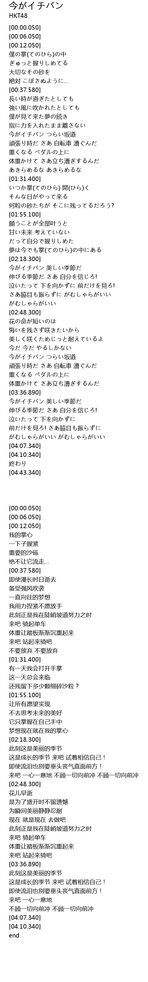 | [03:13.820] | 今がイチバン つらい坂道 |