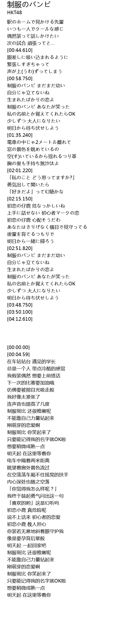 | [03:25.630] | 制服のバンビ あなたが笑った |