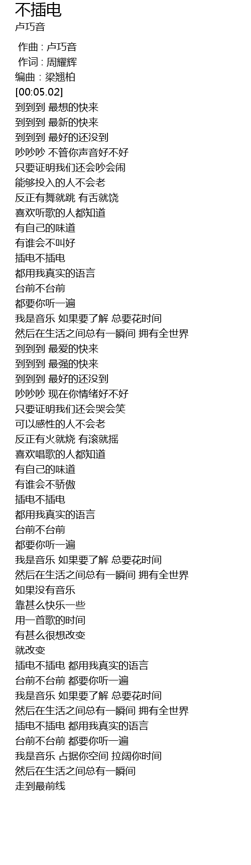 | [02:51.72] | 插电不插电 都用我真实的语言 |