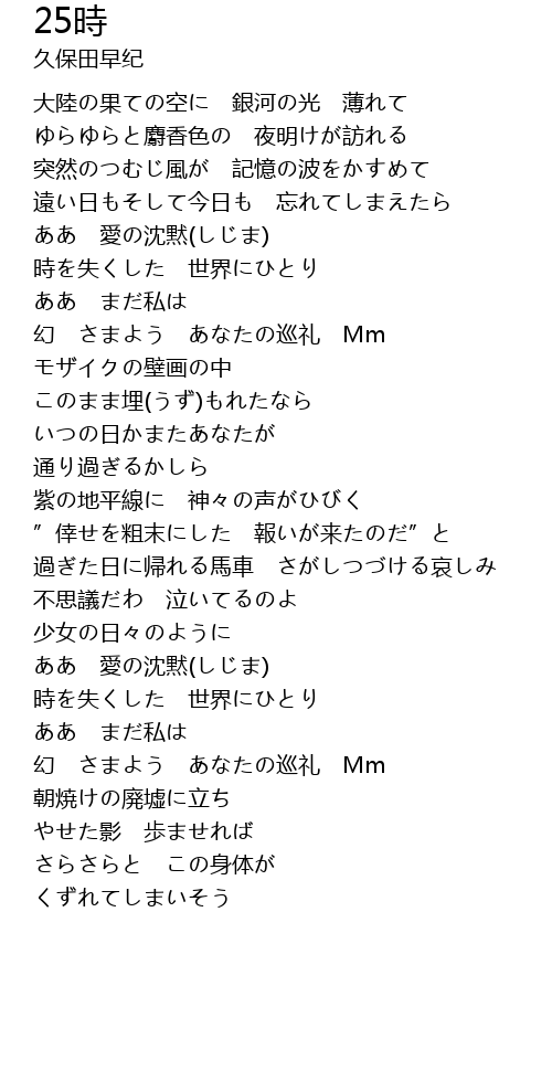 | [01:26.30] | 幻 さまよう あなたの巡礼 Mm |