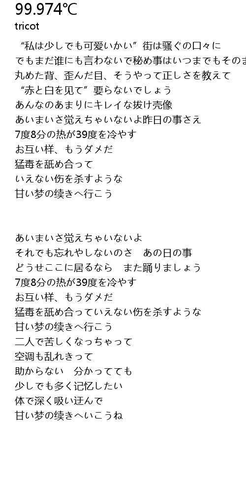 | 猛毒を舐め合っていえない伤を杀すような | |
