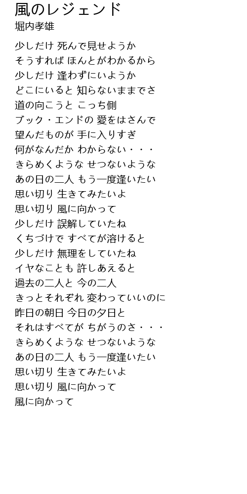 | 歌曲 | 風のレジェンド |