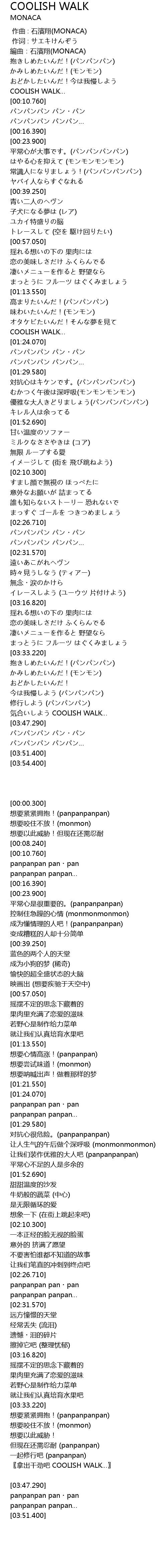| [00:02.600] | かみしめたいんだ!(モンモン) |