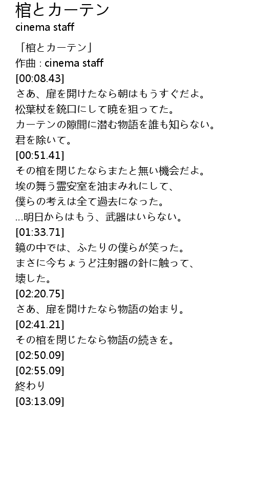 | [00:00.43] | 「棺とカーテン」 |