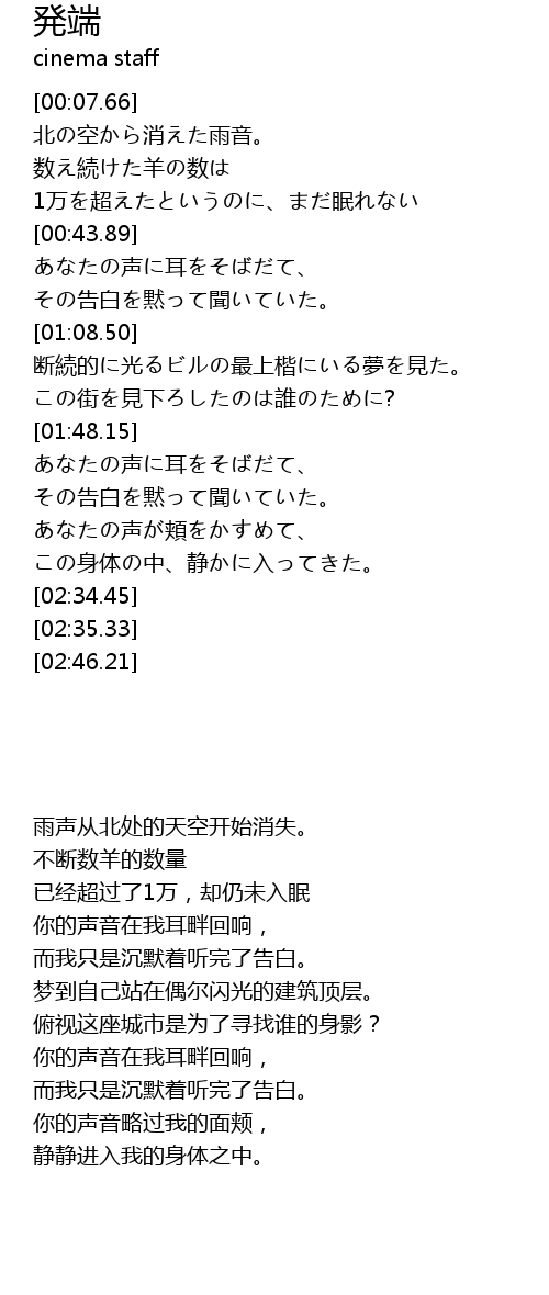 | [02:18.47] | この身体の中、静かに入ってきた。 |