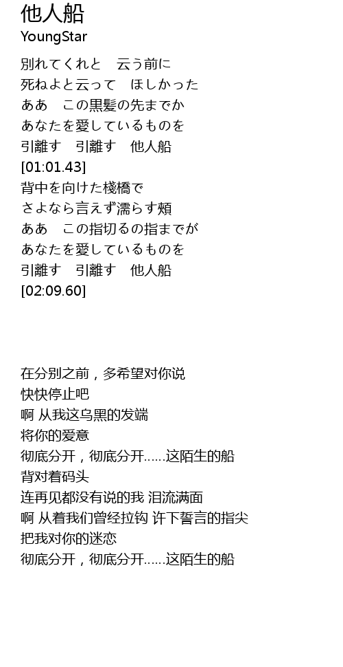 | [01:55.65] | 引離す 引離す 他人船 |