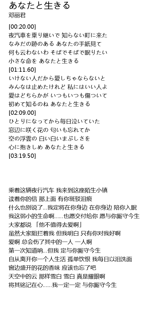 | [00:58.38] | 我这弱小的生命啊……也愿交付给你 愿与你厮守今生 |